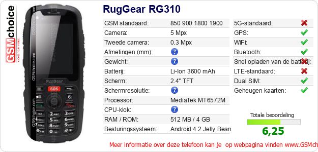 Gegevens van de telefoon RugGear RG310 op jouw webpagina
