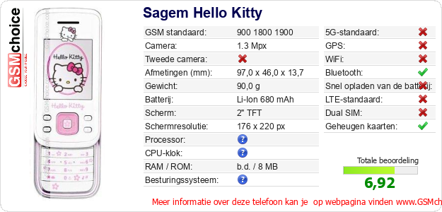 Gegevens van de telefoon Sagem Hello Kitty op jouw webpagina