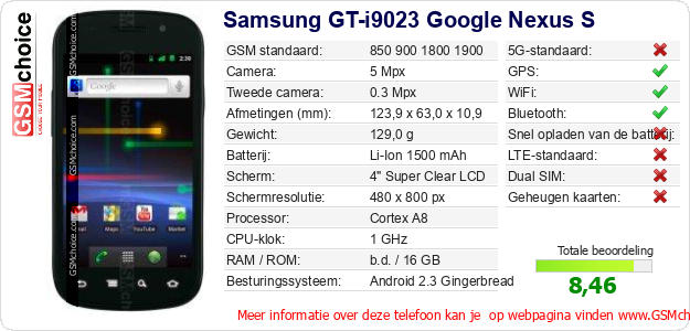 Gegevens van de telefoon Samsung GT-i9023 Google Nexus S op jouw webpagina