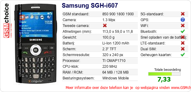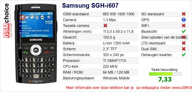 Verkoop je op ebay.com? Heb je jouw eigen webpagina? Als je de basisgegevens over Samsung SGH-i607 ergens wilt publiceren, dan is het heel simpel. Het is voldoende om deze code te kopiëren en op jouw webpagina te plakken:Als je deze code plakt, dan wordt de onderstaande afbeelding getoond: