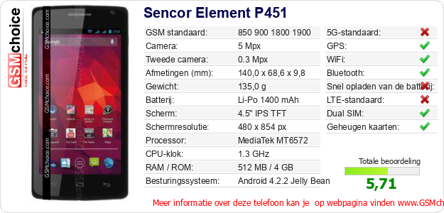 Gegevens van de telefoon Sencor Element P451 op jouw webpagina