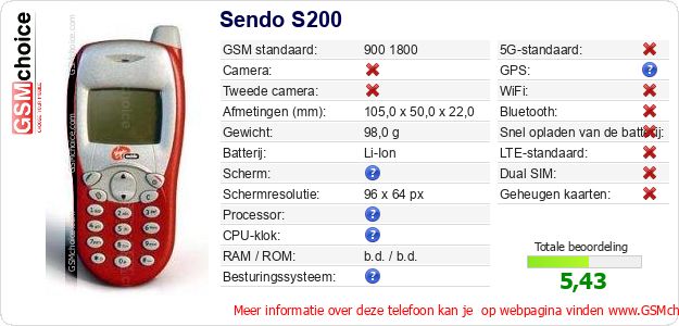 Gegevens van de telefoon Sendo S200 op jouw webpagina