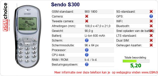 Gegevens van de telefoon Sendo S300 op jouw webpagina