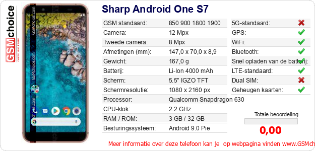 Gegevens van de telefoon Sharp Android One S7 op jouw webpagina