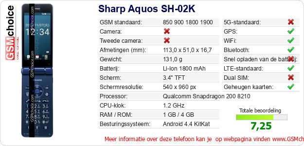 Gegevens van de telefoon Sharp Aquos SH-02K op jouw webpagina