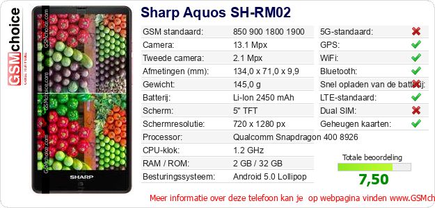 Gegevens van de telefoon Sharp Aquos SH-RM02 op jouw webpagina
