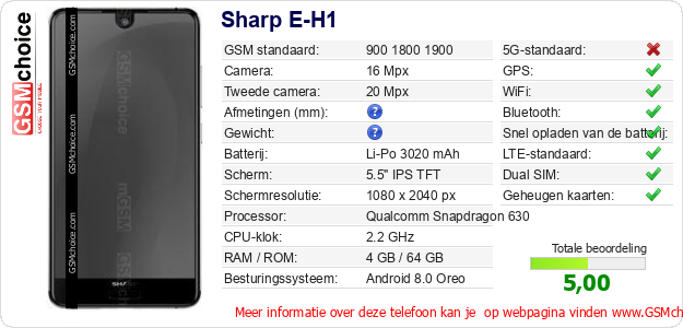 Gegevens van de telefoon Sharp E-H1 op jouw webpagina