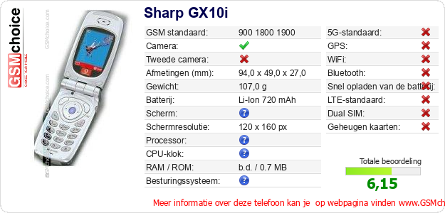 Gegevens van de telefoon Sharp GX10i op jouw webpagina
