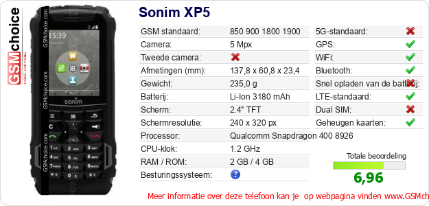 Gegevens van de telefoon Sonim XP5 op jouw webpagina