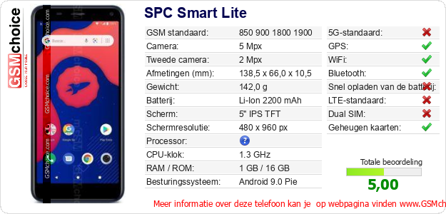 Gegevens van de telefoon SPC Smart Lite op jouw webpagina