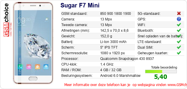 Gegevens van de telefoon Sugar F7 Mini op jouw webpagina