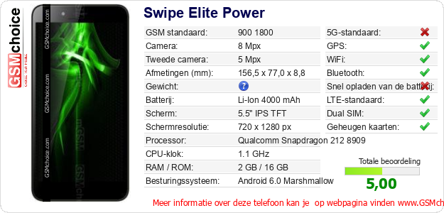 Gegevens van de telefoon Swipe Elite Power op jouw webpagina