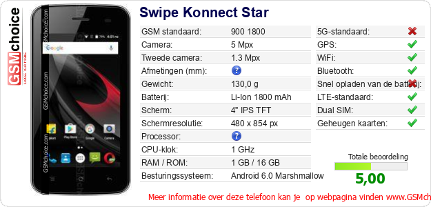 Gegevens van de telefoon Swipe Konnect Star op jouw webpagina