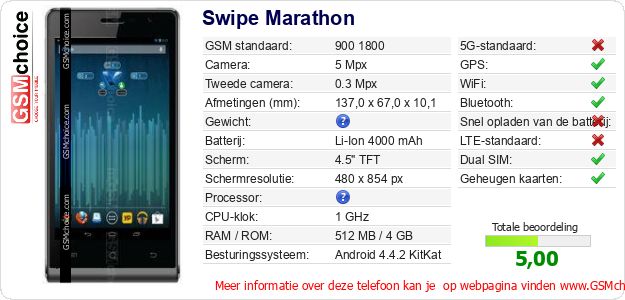 Gegevens van de telefoon Swipe Marathon op jouw webpagina