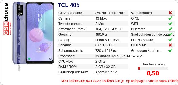 Gegevens van de telefoon TCL 405 op jouw webpagina