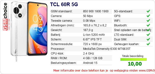 Gegevens van de telefoon TCL 60R 5G op jouw webpagina