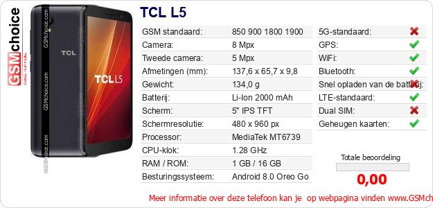 Gegevens van de telefoon TCL L5 op jouw webpagina
