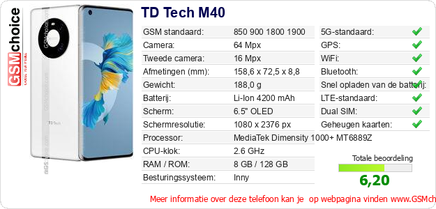 Gegevens van de telefoon TD Tech M40 op jouw webpagina