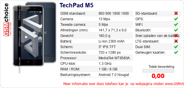 Gegevens van de telefoon TechPad M5 op jouw webpagina