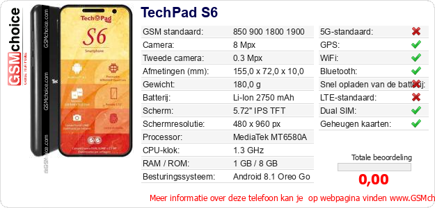 Gegevens van de telefoon TechPad S6 op jouw webpagina