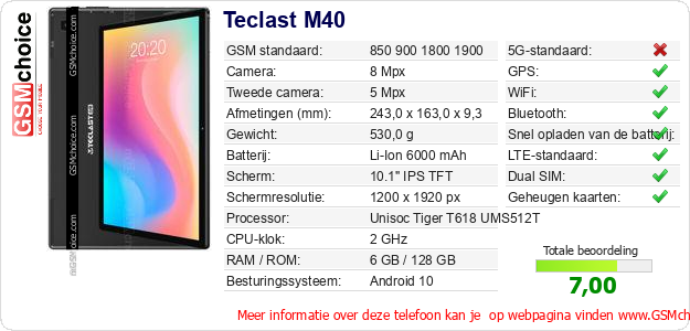 Gegevens van de telefoon Teclast M40 op jouw webpagina