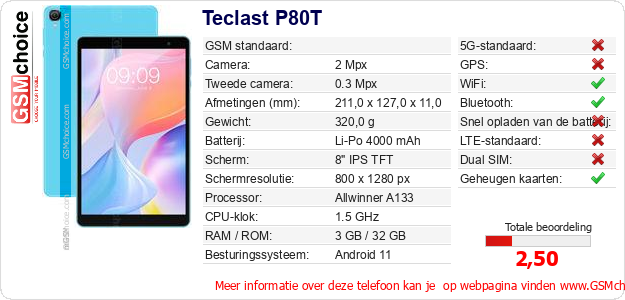 Gegevens van de telefoon Teclast P80T op jouw webpagina