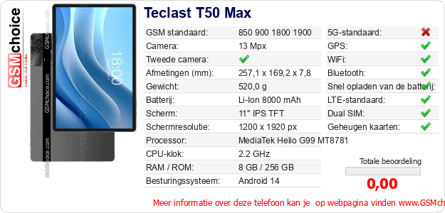 Gegevens van de telefoon Teclast T50 Max op jouw webpagina