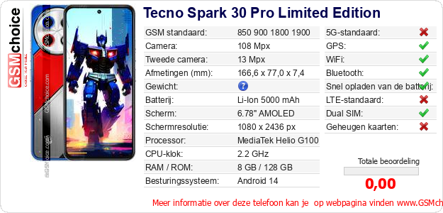Gegevens van de telefoon Tecno Spark 30 Pro Limited Edition op jouw webpagina
