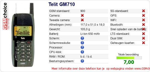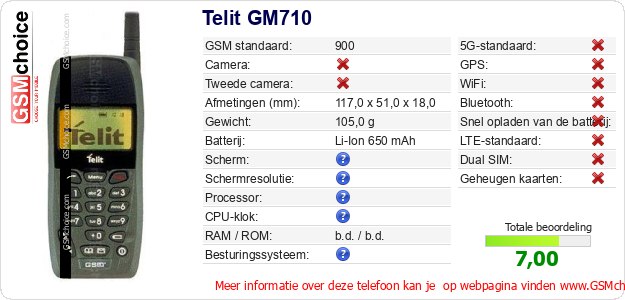 Gegevens van de telefoon Telit GM710 op jouw webpagina