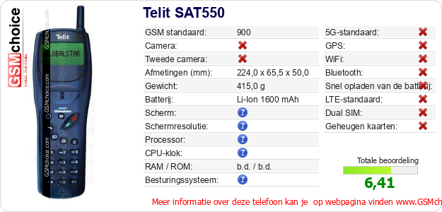 Gegevens van de telefoon Telit SAT550 op jouw webpagina