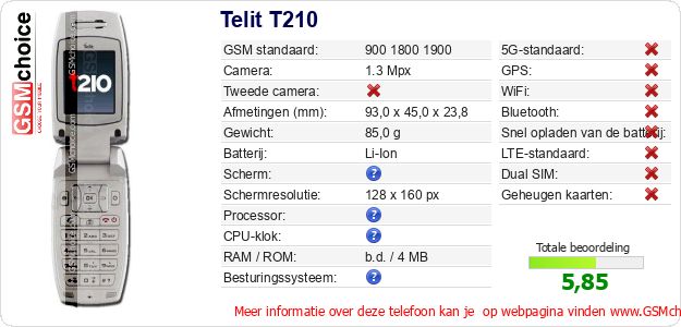 Gegevens van de telefoon Telit T210 op jouw webpagina
