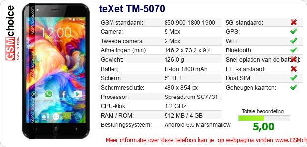 Gegevens van de telefoon teXet TM-5070 op jouw webpagina