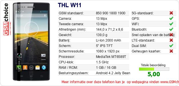 Gegevens van de telefoon THL W11 op jouw webpagina