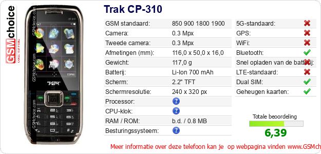 Gegevens van de telefoon Trak CP-310 op jouw webpagina