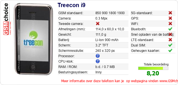 Gegevens van de telefoon Treecon i9 op jouw webpagina