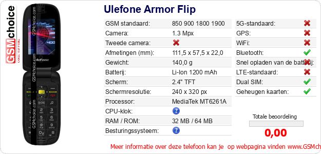 Gegevens van de telefoon Ulefone Armor Flip op jouw webpagina
