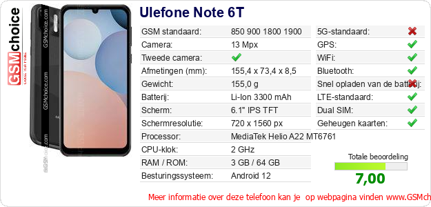 Gegevens van de telefoon Ulefone Note 6T op jouw webpagina