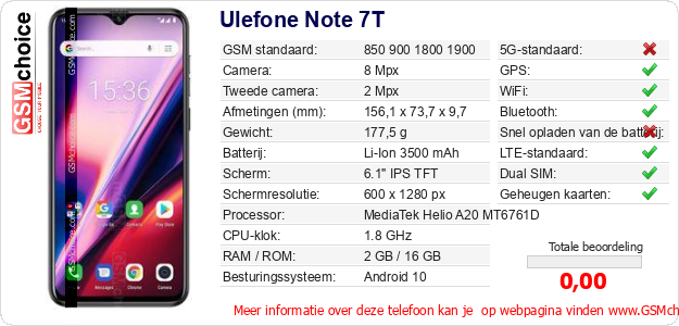 Gegevens van de telefoon Ulefone Note 7T op jouw webpagina