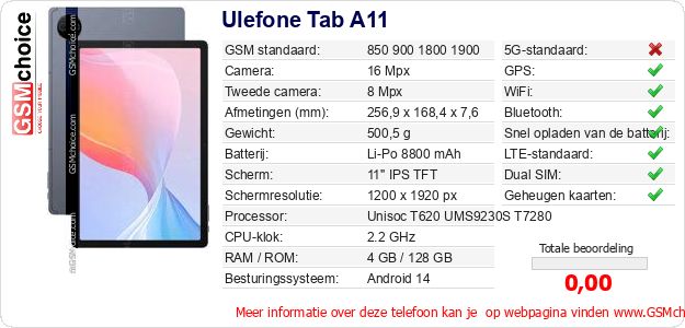 Gegevens van de telefoon Ulefone Tab A11 op jouw webpagina