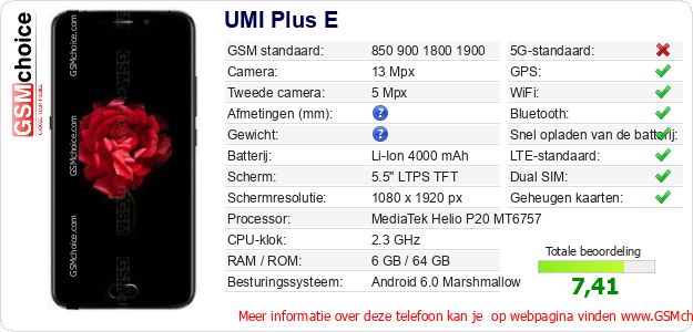 Gegevens van de telefoon UMI Plus E op jouw webpagina