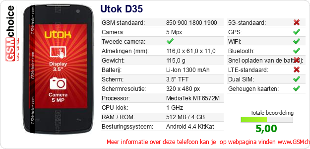 Gegevens van de telefoon Utok D35 op jouw webpagina