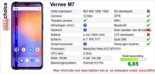 Gegevens van de telefoon Vernee M7 op jouw webpagina