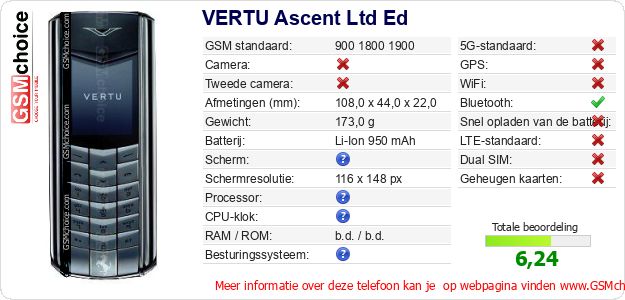 Gegevens van de telefoon VERTU Ascent Ltd Ed op jouw webpagina