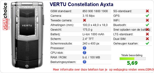 Gegevens van de telefoon VERTU Constellation Ayxta op jouw webpagina
