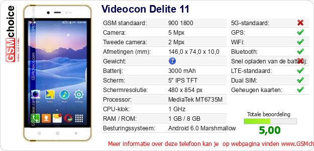 Gegevens van de telefoon Videocon Delite 11 op jouw webpagina