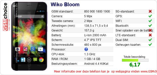 Verkoop je op ebay.com? Heb je jouw eigen webpagina? Als je de basisgegevens over Wiko Bloom ergens wilt publiceren, dan is het heel simpel. Het is voldoende om deze code te kopiëren en op jouw webpagina te plakken:Als je deze code plakt, dan wordt de onderstaande afbeelding getoond: