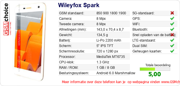 Gegevens van de telefoon Wileyfox Spark op jouw webpagina