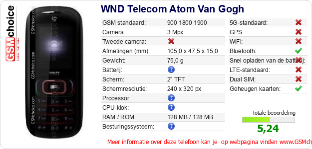 Gegevens van de telefoon WND Telecom Atom Van Gogh op jouw webpagina