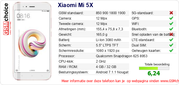 Gegevens van de telefoon Xiaomi Mi 5X op jouw webpagina