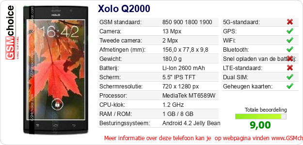 Gegevens van de telefoon Xolo Q2000 op jouw webpagina